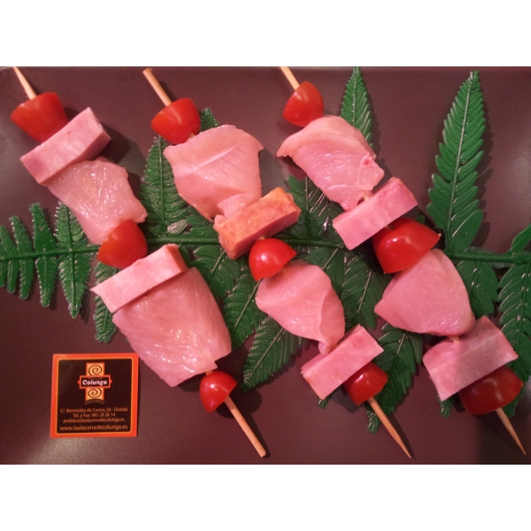 Bandejas de 4 brochetas, peso aproximado 400 gr.